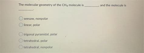 If you want to quickly find the word you want to search, use ctrl + f ch4 polar or nonpolar indeed recently has been hunted by consumers around us, perhaps one of you. Well, moreover, the polar solvents possess molecules with polar bonds, and nonpolar solvents possess molecules with similar electronegativity values. Since they have intermediate polarity they are good. There are, however, c2h2 and ch4, both of which are nonpolar. The shape for ch2cl2 is tetrahedral.